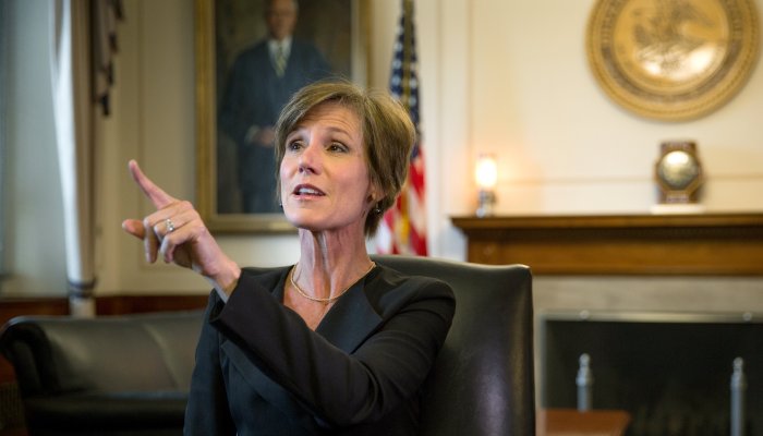 在前总统奥巴马任命的美国司法部代理部长莎莉·耶茨(Sally Yates)告诫司法部的律师们不要为特朗普备受争议的难民禁令进行辩护后,她在几个小时后就被这位新任美国总统炒了鱿鱼。