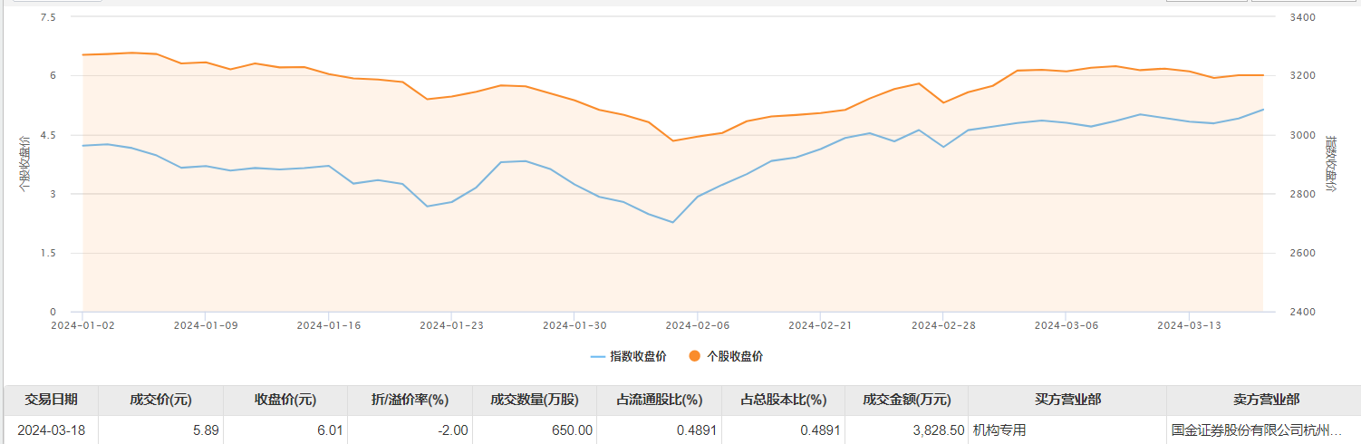 重庆路桥3月18日大宗交易成交650万股,成交额3828.5万元,占当日总成交额的21.47%,成交价5.89元,较市场收盘价6.01元折价2.0%。