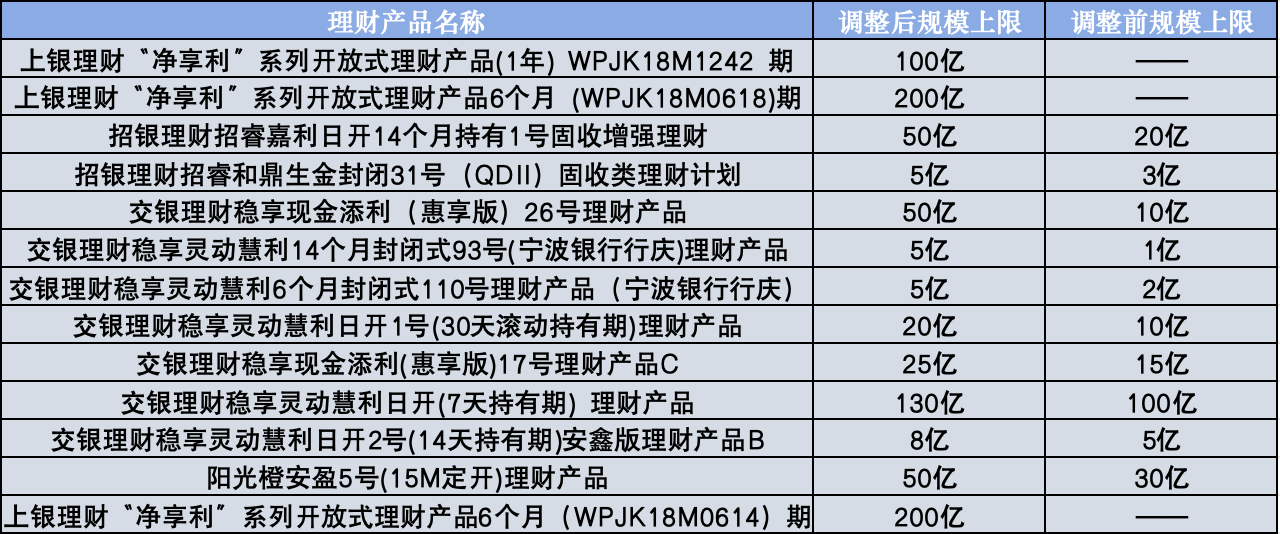 此外,招银理财、光大理财、徽银理财等理财公司也加入上调产品规模上限的大军。