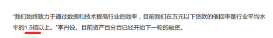 该平台开发了一套催收SaaS管理系统。创始人李丹说,“目前我们在万元以下贷款的催回率是行业平均水平的1.5倍以上。”