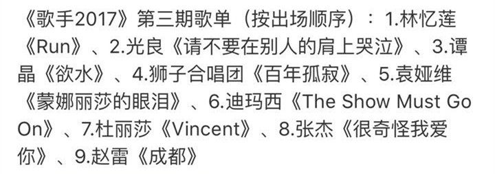 而根据网上公布的歌单来看,各位歌手们在歌曲的选择上也都费尽心机,毕竟在《歌手》的舞台上,选歌的重要性无需多言,选择一首对的歌就算是成功了一半。所以仅仅从歌单上,我们就能预见接下来新一期节目将会异常精彩激烈。