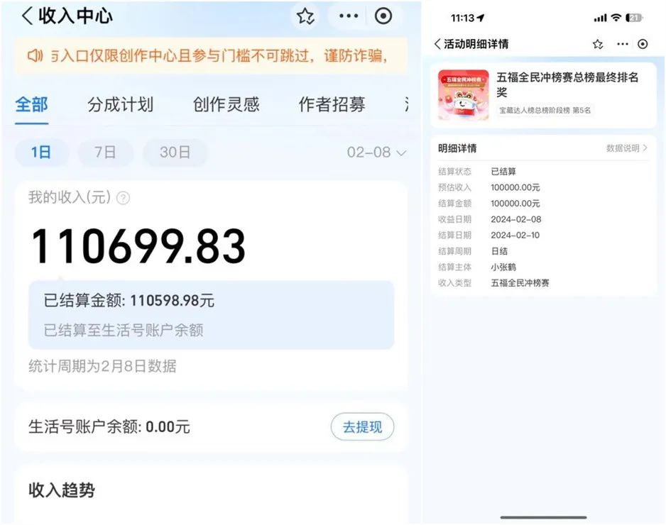 图 | “小张鹤”参与活动的收入