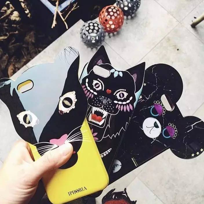 而他家推出的手机壳也是延续了这种轻快俏皮,大胆的色块碰撞,手绘、涂鸦、日系卡通等等风格不一而足,异形造型也多是走小猫咪小天鹅等可爱风,绝对适合各个年龄段的少女。