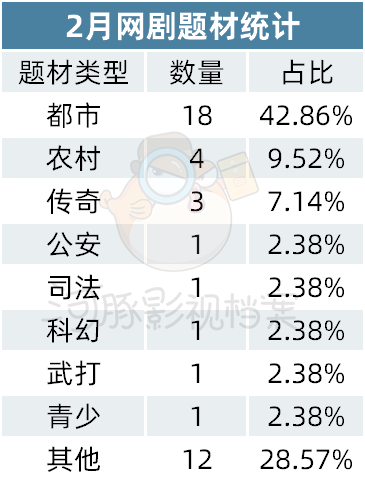 相较于1月备案的45部,本月备案数减少3部,下降6.67%;相较于去年2月的32部备案数,本月增加10部,同比增加了31.25%。总体而言,本月备案数与上月相差无几,仅有小幅回落,市场仍在稳步前进。