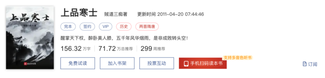 新丽备案了24集的古装男频剧《上品寒士》,该剧改编自起点中文网作者贼道三痴的同名小说。贼道三痴乃资深网文作家,凭借该小说在网络历史小说类型中立足。