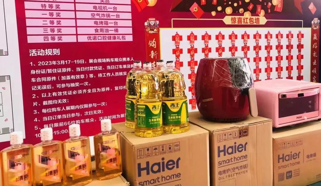 大会组委会还设置了购车抽奖环节,家电、食用油、购物车、生活礼包,百分百中奖!