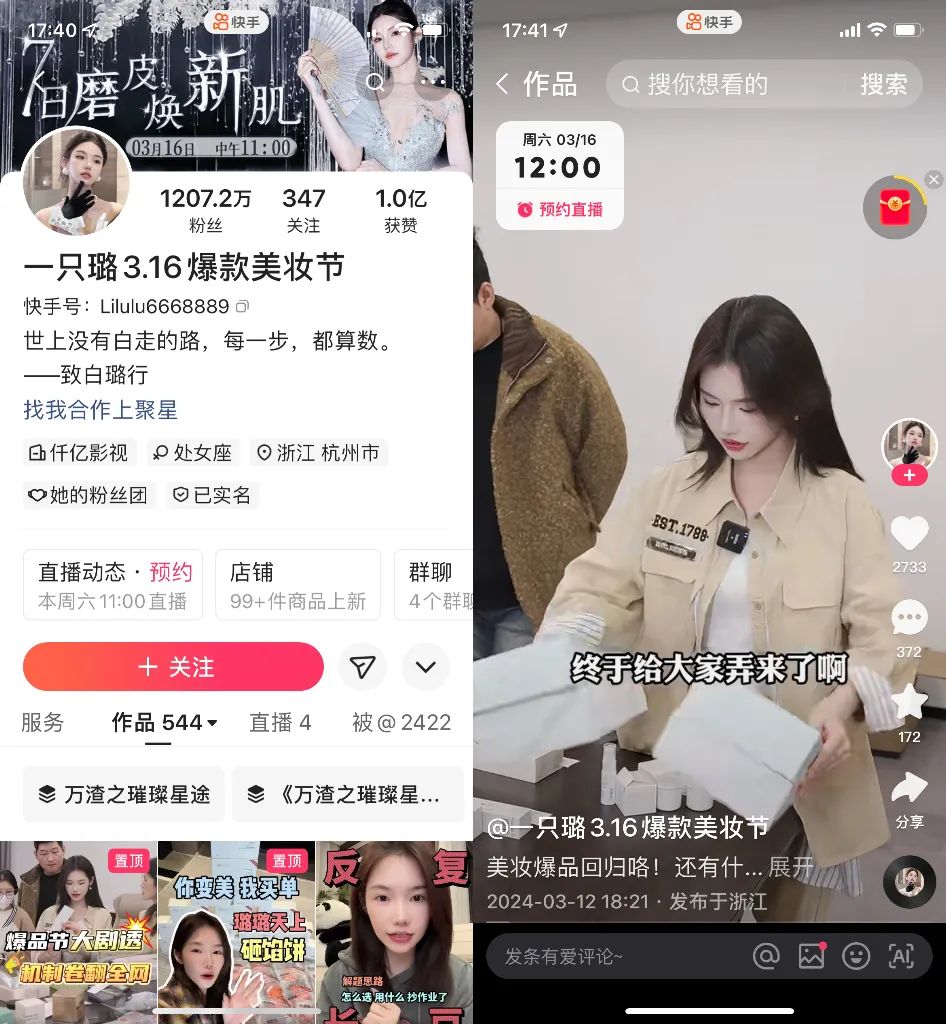 显然,这条上升之路的尽头并非长剧与电影。在快手短剧界,《长公主在上》CP圻夏夏与锦超,同一公司、多次共演的一只璐与李菲,都是女方选择了深耕短视频、做自己的大女主,男方则想出去看看。