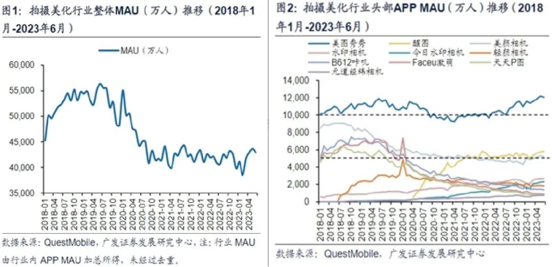 如此错位打法下,可以看到,截至2023年6月,美图秀秀的MAU过亿;醒图和美颜相机的MAU,也都跨入5000万梯队。