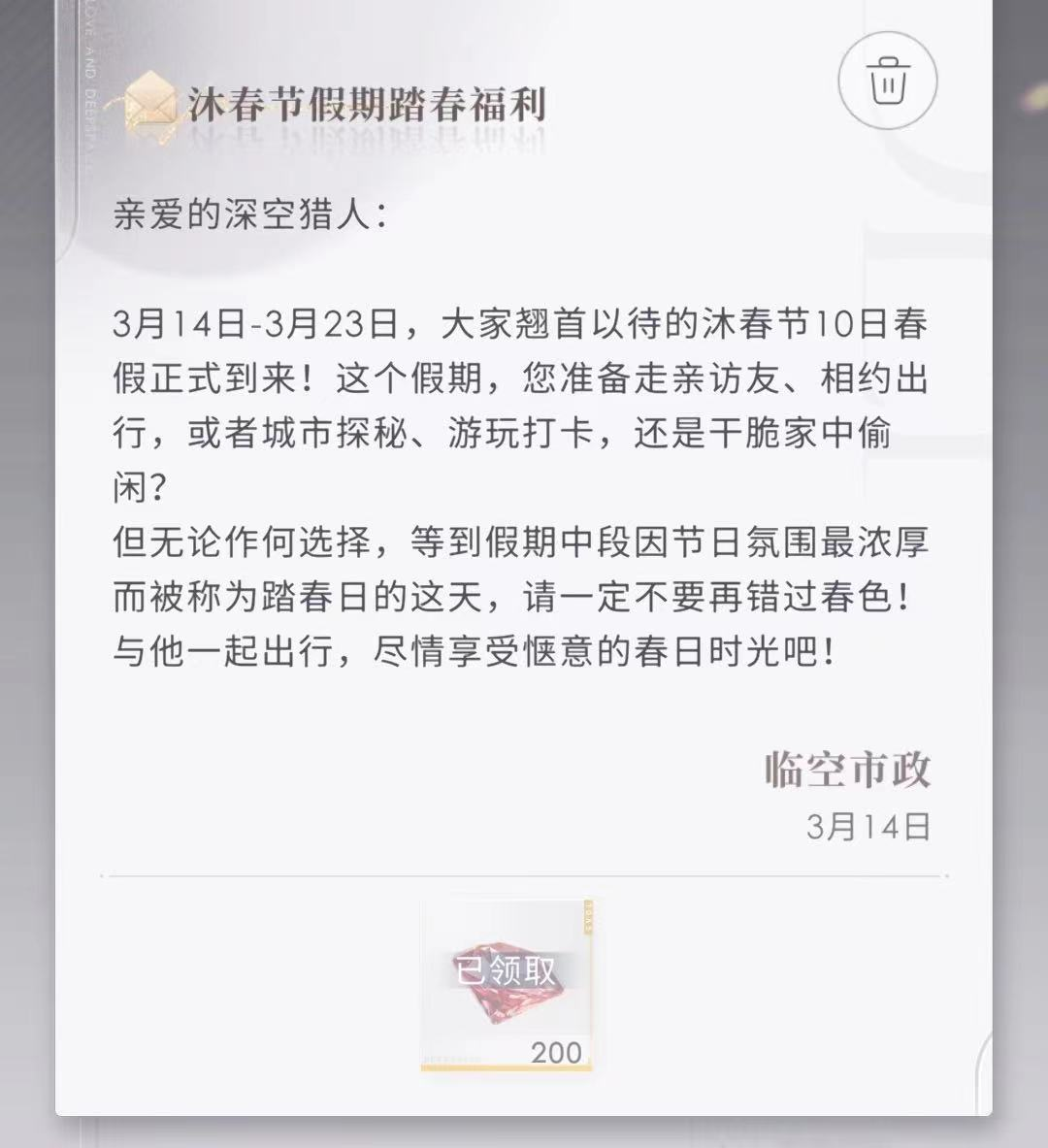 “游戏试图架空各个节日,包括像春节、元宵节、妇女节这些大家都在过的节日,游戏内不做剧情、没有短信。在疲惫打工日的晚上,点开游戏发现架空世界临空正在‘过节’,还一放就是十天假,真的很难有代入感。”土拨鼠和身边的朋友都有此共鸣。