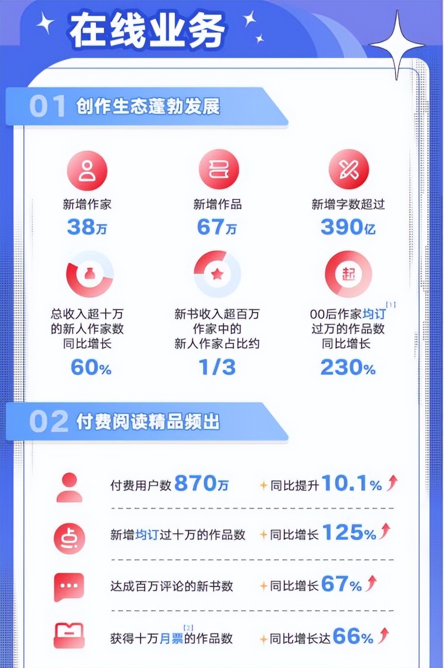 财报显示,阅文的付费表现向好,2023年月付费用户数达到870万,2022年为790万,同比增长10.1%,付费率也有明显提升。