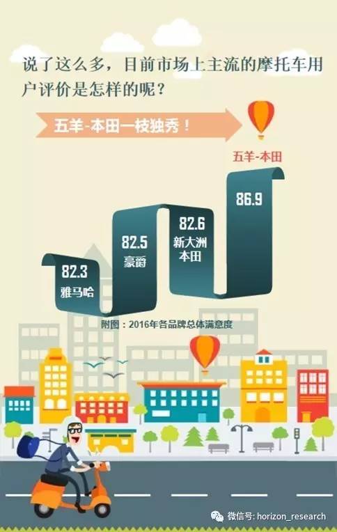 2016年用户总体满意度五羊-本田位居调查品牌首位,持续多年领跑;