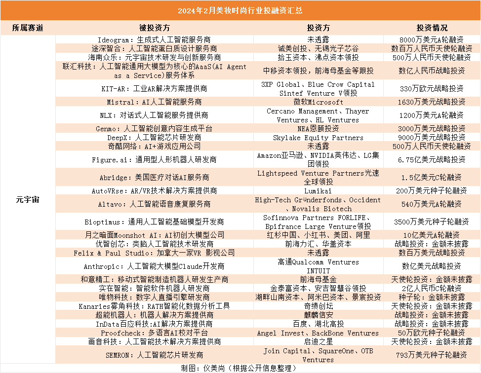 不过,从类目来看,2月美尚投融资赛道呈现出新的格局:护肤及彩妆香氛赛道“无人问津”,元宇宙赛道却挤到“爆炸”。