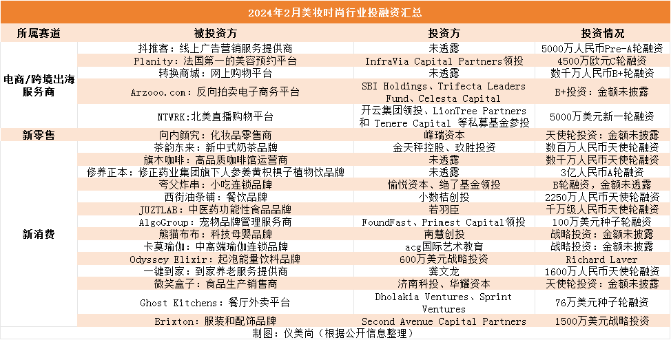而单看护肤类目及彩妆香氛品牌市场,均仅发生1起投融资,与1月发生的14起相比,共计减少约82%,投融资总金额也仅有数千万元。