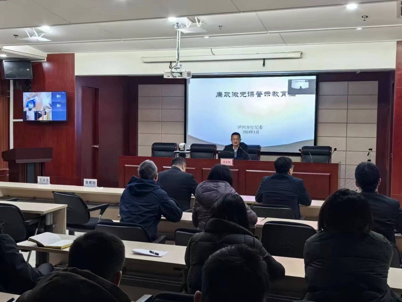 泸州分行纪委举办“线上+线下”的“警示促廉”专题廉政微党课。微党课上,泸州分行纪委书记从当前金融领域反腐形势,谈到必须坚持党对金融工作的集中统一领导,坚持社会主义基本政治制度,坚持金融工作的政治性、人民性和专业性。随后,分行纪委组织行员贯彻学习第二十届中央纪律检查委员会第三次会议精神,,同时紧扣党规党纪主线给参会人员讲解3个代表性案例,以案促廉让全体参会人员深刻认识到诱惑就在身边、陷阱就在脚下、违纪就在瞬间,必须时刻用纪律绑住自己的手,坚定理想信念,自觉加强学习,加强党性修养,牢固树立纪律规矩意识,主动接受监督,守住底线,不触高压线,在纪律规矩约束下用权、做事。