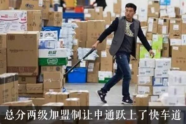 为此,申通研究了其他行业的模式之后,把“加盟”引入到快递行业,制定了加盟模式。向总部交纳几百元押金就可以开设网点。来自桐庐的老乡们在“自己做老板,赚钱大头归自己”的诱惑之下,纷纷跟着申通奔向全国各地开拓市场。