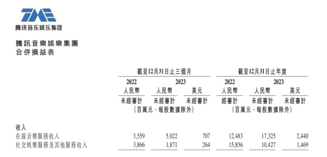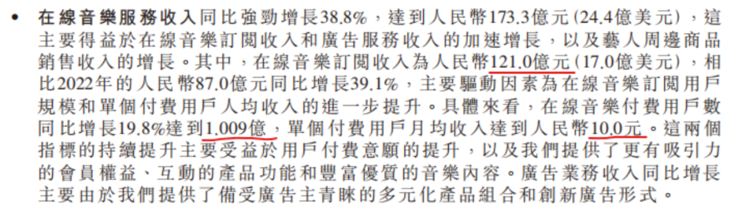 *来源腾讯音乐2023年第4季度及全年业绩报告