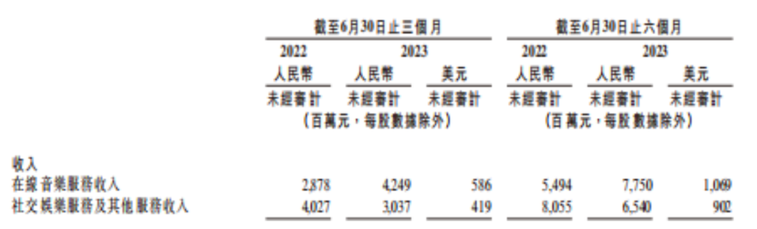 来源腾讯音乐2023年第2季度及全年业绩报告