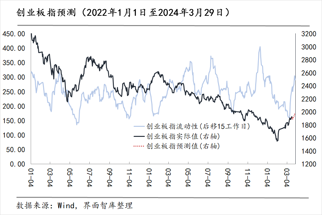 同时通过计算,我们将重置后创业板指流动性指数后移15个交易日作为创业板指变动预测的依据。