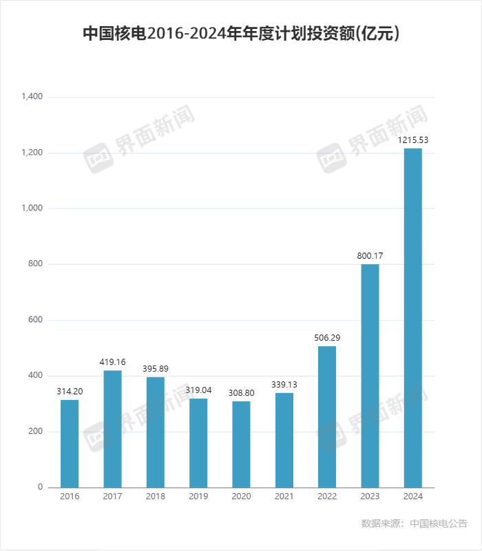中国核能电力股份有限公司(601985.SH,下称中国核电) 年度投资计划再创新高。