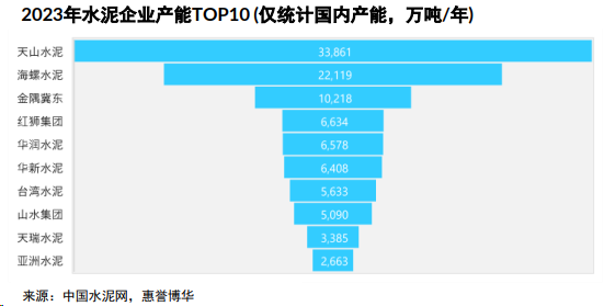 从产能来看,国内水泥龙头为天山股份(新疆天山水泥股份有限公司,000877.SZ),其次便是海螺水泥。