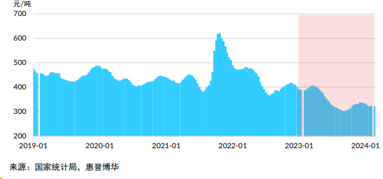 惠誉博华研报指出,2023年水泥价格走势大体呈现“前高后低”,且价格下行时间较长,全年低位弱势震荡成为主旋律。2024年一季度,水泥价格延续弱势运行。