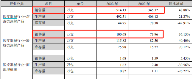 财报显示,去年爱美客凝胶类注射产品共销售100.68万支,溶液类注射产品共销售514.13万支。