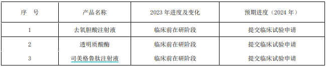 - 用于溶解透明质酸的注射用透明质酸酶处于临床前在研阶段。