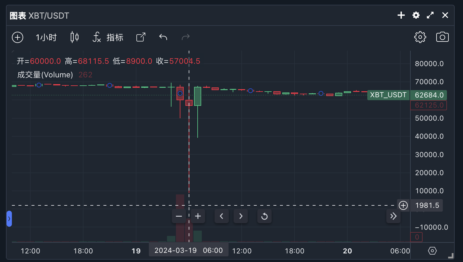3月19日,加密货币交易所BitMEX内的比特币交易价格一度跌至8900美元/枚,较比特币当日正常市场价格6.3万美元大幅下滑85%。