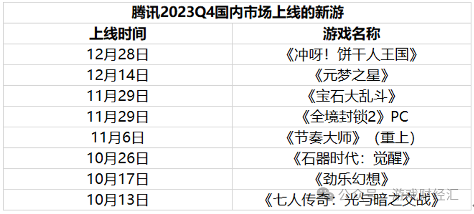 23Q4,腾讯在国内市场接连推出了8款产品,但收入预计延递。在大陆市场,腾讯Q4每个月都有2-3款产品上线,如下表。