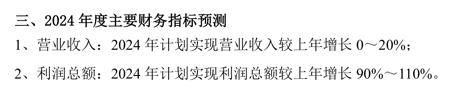 另外,成飞集成也披露了2024年度财务预算方案。公司称,根据对2024年整体经济环境、国家产业政策、市场预测等各方面信息的综合分析判断,并坚持以市场研判为依据,以自身资源为基础的原则,公司编制了2024年度全面预算,并预测财务指标:2024年实现营业收入较上年增长0~20%;2024年实现利润总额较上年增长90%~110%。当然成飞集成也表示此仅为2024年度经营计划的管理控制指标,能否实现受新业务拓展进度、运营质量以及宏观经济环境与市场需求变化等重大不确定性影响,不代表公司2024年度盈利预测,存在一定的不确定性。
