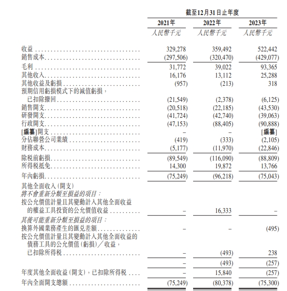 2021-2023年,国富氢能营收分别约3.29亿元、3.59亿元和5.22亿元;亏损额分别为约7525万元、9622万元和7504万元,其中2023年亏损交上一年收窄约22%。