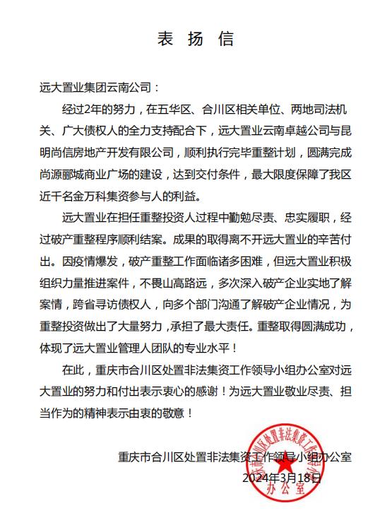 直至2020年,远大置业云南公司被增加为麻园城改的项目社会投资人,并于2021年以投资人身份参与尚源郦城破产重整项目,随后在远大的努力下,尚源郦城成为了五华区首例成功破产重整项目,麻园城改迎来了新的可能。