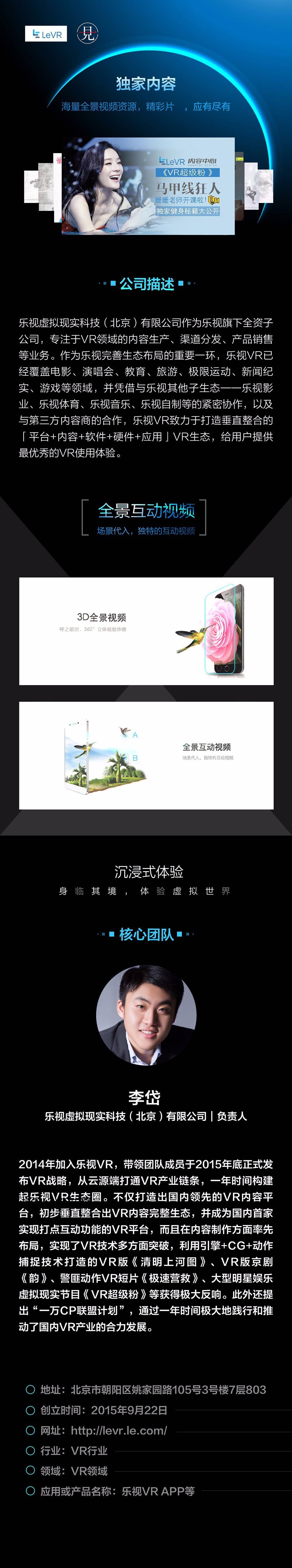 【李岱】乐视VR两年多前就已经成立开始做了,经过了快一年的准备期,在2015年12月23日正式对外宣布乐视VR的战略。对外宣布至今也只有一年多,到目前为止,总共大概有两年多时间了。