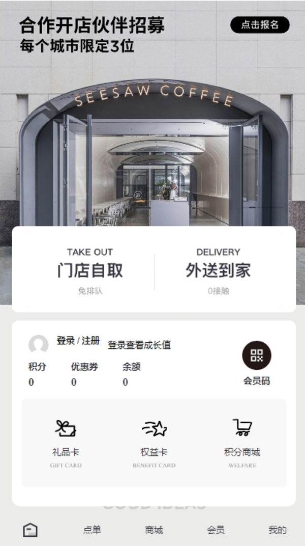 近日,Seesaw官方小程序首页出现了“合作开店伙伴加盟”的banner图,并注明“每个城市限定3位”的字样。点击进入后是一份“合作开店意向登记”的表格,需填写包括餐饮管理经验、是否有合适铺位、投资预算在内的相关信息,并在表格末尾注明相关工作人员会在5个工作日内进行联系。(赢商网)