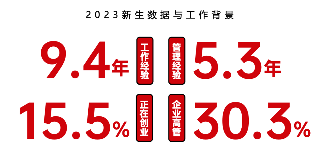 根据交大安泰MBA官网的公开资料显示,以往MBA新生的平均工作经验9.4年,平均管理经验5.3年;其中15.5%的新生处于正在创业阶段,30.3%担任企业高管。