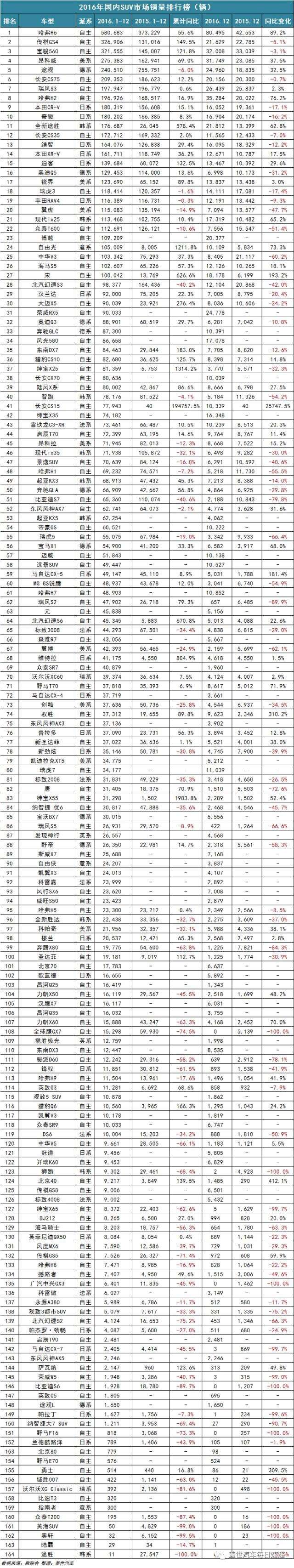 还有些车型此次虽然没有跻身前十,但是潜力巨大。于2016年3月份和7月份上市的吉利博越和荣威RX5,上市之后短时期内销量便突破万辆。荣威RX5在10月份销量突破两万辆,而吉利博越的销量也于12月份突破两万辆,并且仍有3万辆的订单未能消化。2017年这两款车型的销量势必还有提升空间,表现令人期待。