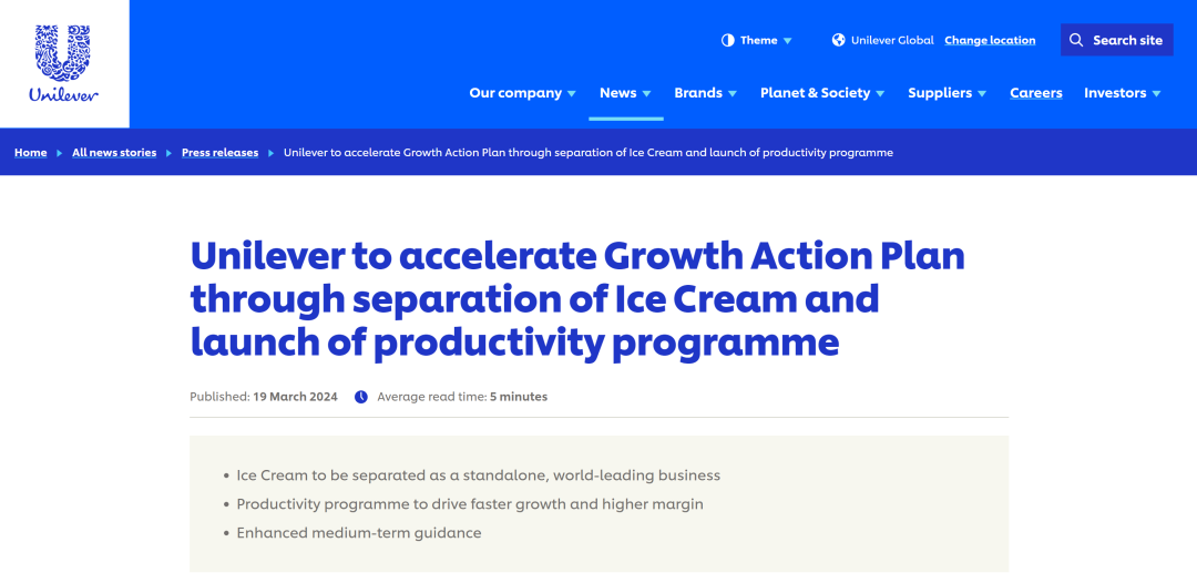 彭博社专栏作家Andrea Felsted指出,联合利华此次剥离冰淇淋业务,专注于高端美容等高增长类别,是“正确的做法,舒马赫不应该就此结束重组。”