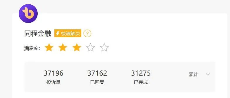 截至2024年3月21日21时,同程金融共有相关投诉累计37196条,其中不乏暴力催收、砍头息、高利贷、捆绑销售不需要东西等质疑。
