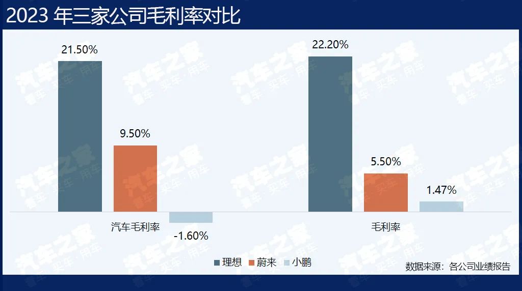 #02、理想毛利率提升至行业高水平,小鹏蔚来则俱降