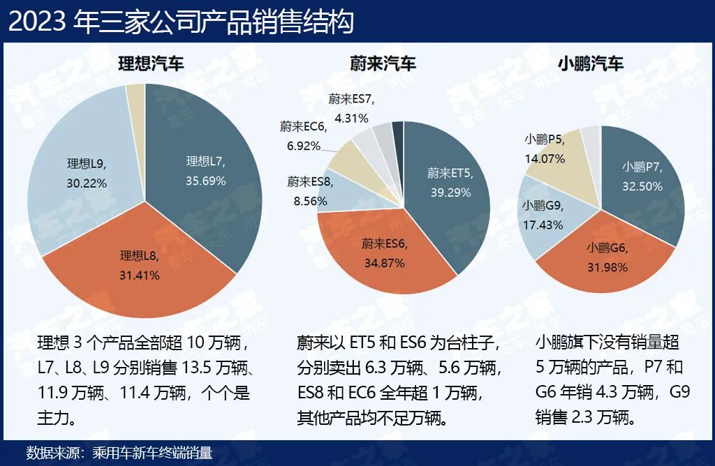 并且三家都有细分市场表现不错的产品,比如理想L9是年度大型SUV销冠,理想L7、L8分获中大型SUV年度销量冠亚军,蔚来ES6在纯电中型SUV的销量仅次于Model Y,小鹏G9是纯电中大型SUV年度销冠。作为经受住了阶段性考验的新势力,蔚小理手里都还是有两把刷子的。那为什么赚钱的节奏不一样了呢?