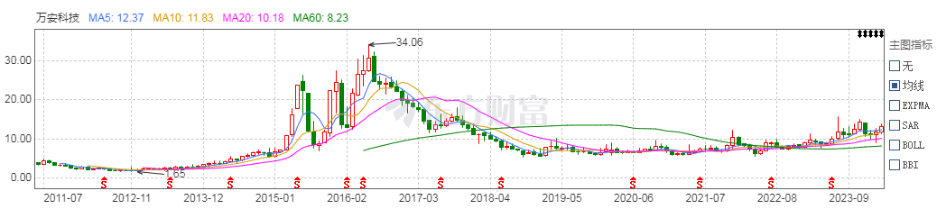 2023年,万安科技以两位数的增长态势,领先同行。然而,公司股价却长期波澜不惊,最新价格约15元/股,距离历史高点接近腰斩。