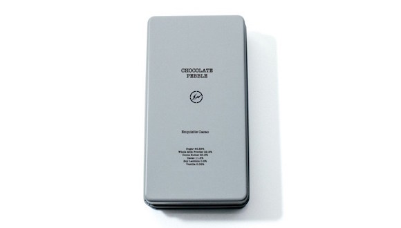 这次的Chocolate Pebble巧克力,铁盒与真空两种包装设计均选择具有工业气息的银灰色作为主调,将Chocolate Pebble标志以及fragment design的闪电Logo点缀于其上,定价分别为3500日元(约合人民币213元)和1800日元(约合人民币109元)。