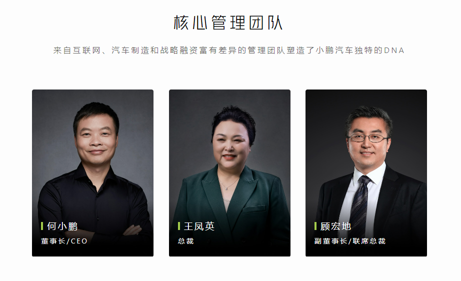 小鹏汽车核心管理团队,图源小鹏汽车官网