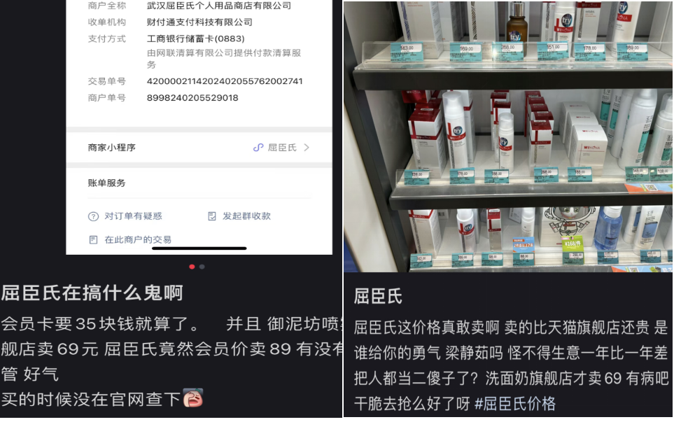 翻阅小红书、知乎、豆瓣等平台不难发现,部分消费者对于屈臣氏“不满”集中体现在知名化妆品品牌的售价甚至超过了品牌自营的电商渠道。