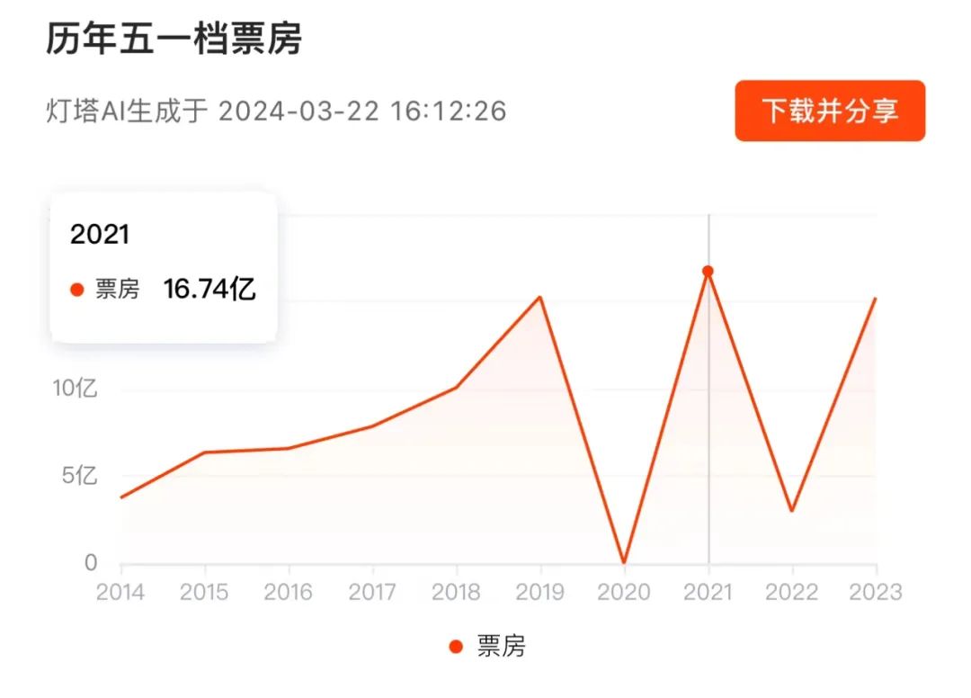 譬如创造档期票房纪录的2021年五一,为期5天的档期中跑出了《你的婚礼》《悬崖之上》两部力作,而后者的累计票房最终还突破了10亿元大关。