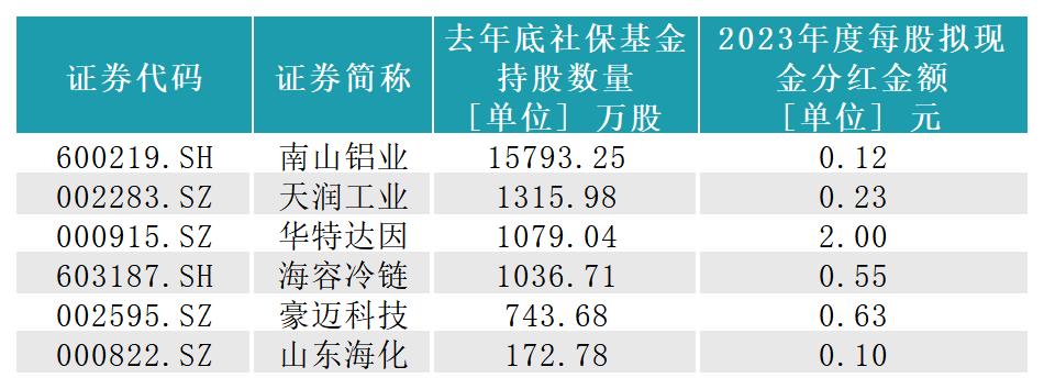 值得注意的是,社保基金对于具备现金分红能力的个股颇为青睐,41只持仓个股中有40只给出了现金分红预案,特别是部分获得社保基金加仓的鲁股,出手颇为豪爽,如华特达因拟每10股拟派发20元现金红利,豪迈科技拟每10股派发6.25元现金红利。