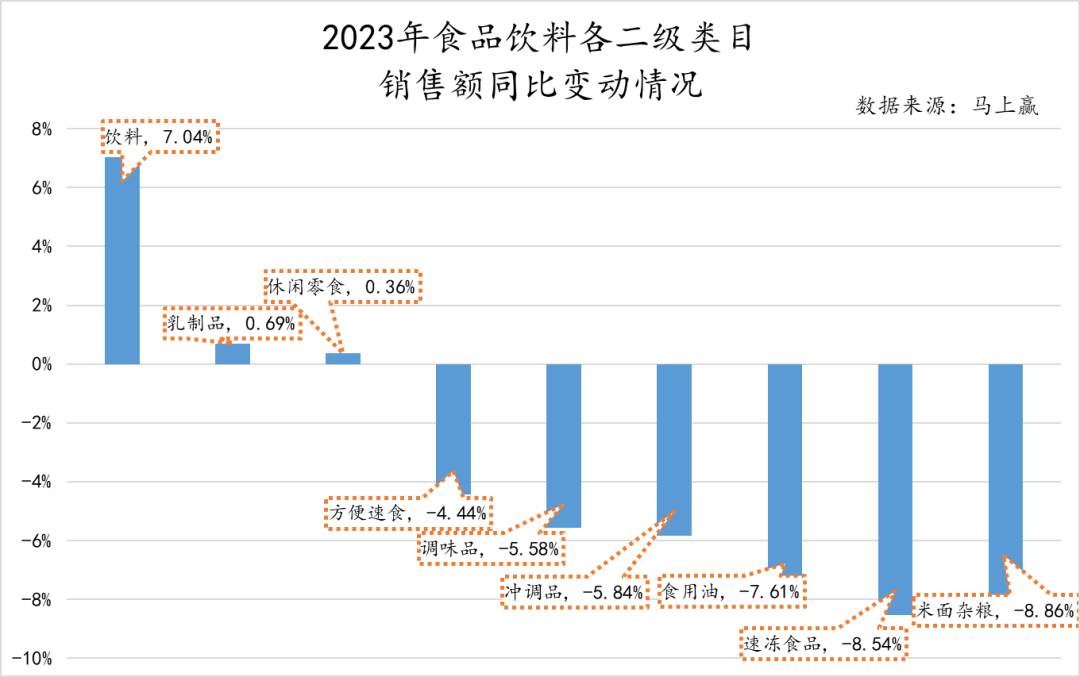 以饮料为例,根据马上赢数据,2023年销售额同比增长较明显的区域是东北地区、西北地区、华北地区,而传统印象中饮料零售更发达、天气炎热人均消费量更高的华南、华东,反而在饮料销售额同比增长上没那么高。