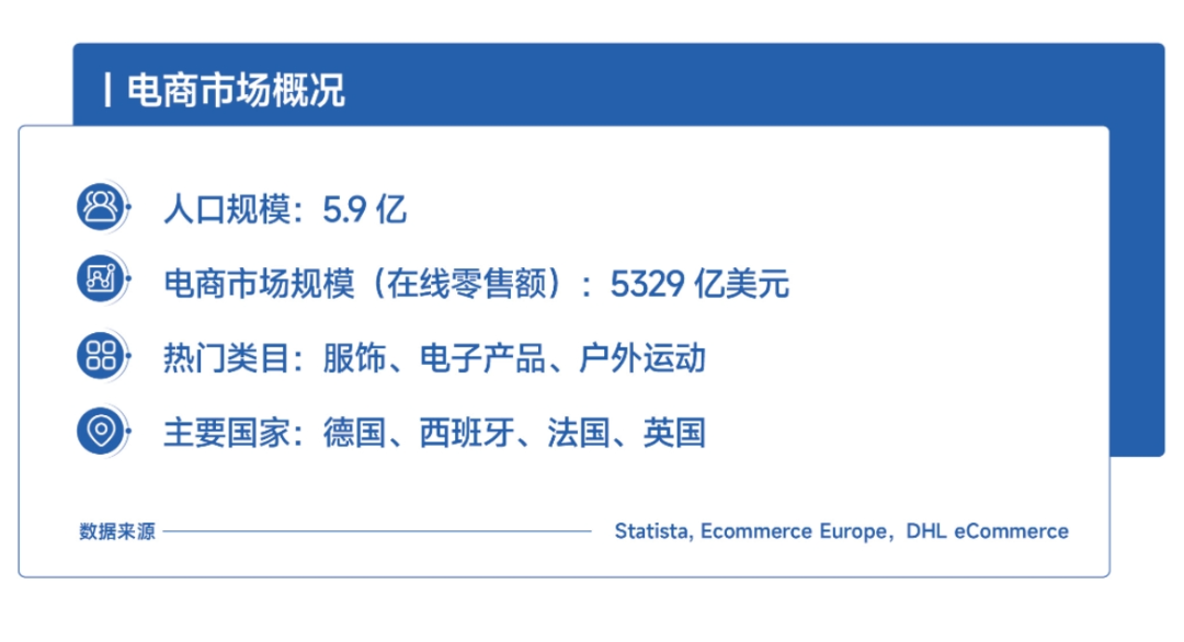欧洲市场的高度一体化,使跨境网购成为十分平常的购物方式。疫情进一步促使电商渗透,电商消费者占比在2022年达到76%。中国是大多数欧洲国家消费者最主要的商品来源地,2023年45%的欧洲消费者购买过来自中国的商品(DHL eCommerce报告)。