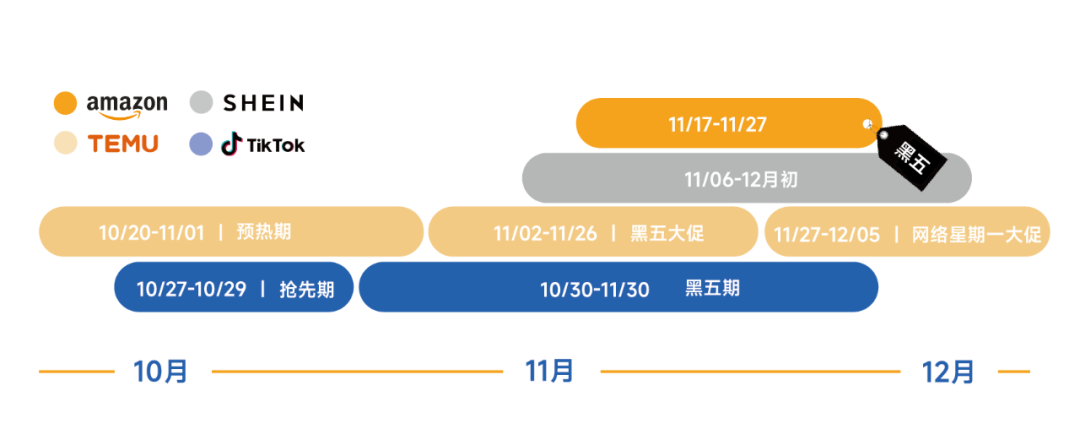 不仅力度更大,“黑五”战线也被大幅拉长,迫使启动最晚的亚马逊,首次将活动时间拉长1倍至11天。