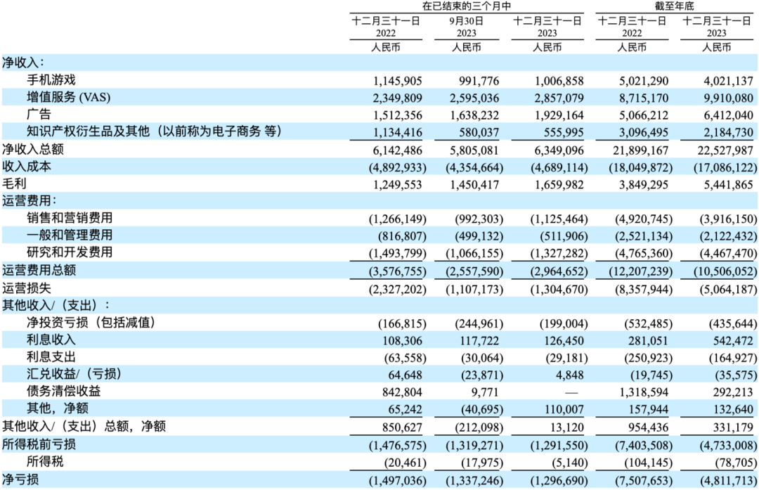 因此,在2023年财报里,市场继续看到了B站亏损的缩窄。报告期内,B站经营亏损为51亿元,同比收窄39%,净亏损为48亿元,同比收窄36%。